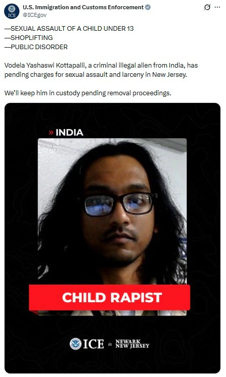 • आरोपी की पहचान: अमेरिकी आव्रजन और सीमा शुल्क प्रवर्तन (ICE) ने आरोपी की पहचान वोडेला यशस्वी कोट्टापल्ली के रूप में की है।