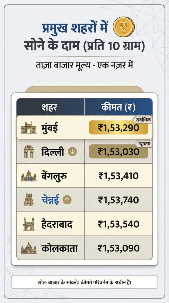 शहरसोना (24K, प्रति ग्राम)सोना (22K, प्रति ग्राम)चांदी (प्रति किलो)